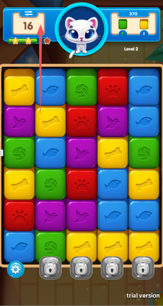 4、注意左上角的剩余步数显示,合理规划每次操作,确保在限定步数内完成关卡目标。