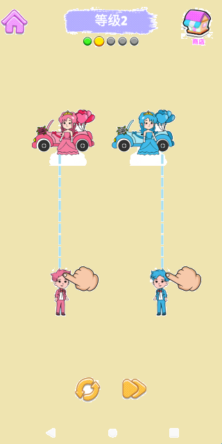 1、如下图,玩家需要使用手指在屏幕上画线,让新郎能够成功移动到新娘处即可闯关。
