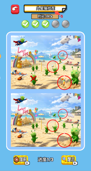 3、体验从眼花缭乱到精准定位的找茬乐趣,成为人人夸赞的找茬高手。
