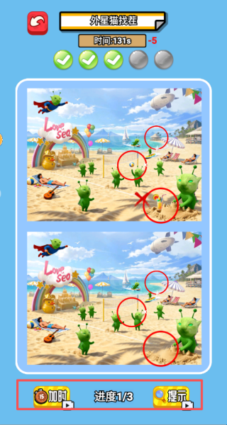 2、上方会显示任务中一共有5处地方需要你找到,确保不遗漏任何一个细节。