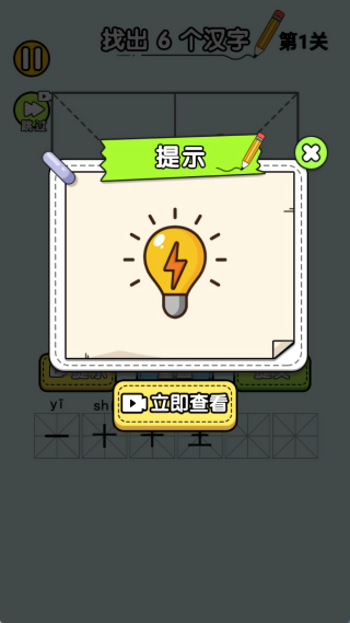 汉字脑洞挑战是有非常有趣的益智闯关小游戏,顾名思义,该游戏以汉字为主,内置大量汉字相关的关卡等你挑战哦,比较考验玩家的脑力和汉字储备情况,里面营造的氛围是比较轻松愉悦的,更有提示功能提供,能帮你解决各种难题,轻松通关。