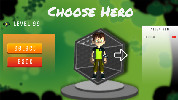 2、选择游戏角色,点击箭头还可更换角色,现提供了多名角色供玩家选择,右侧还会显示角色的生命值;