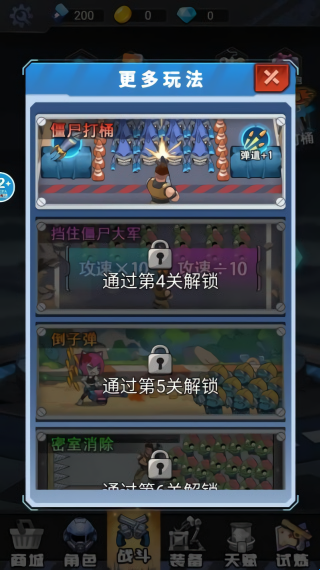 1、打开游戏,进入更多玩法当中,完成关卡往后解锁新的调整。