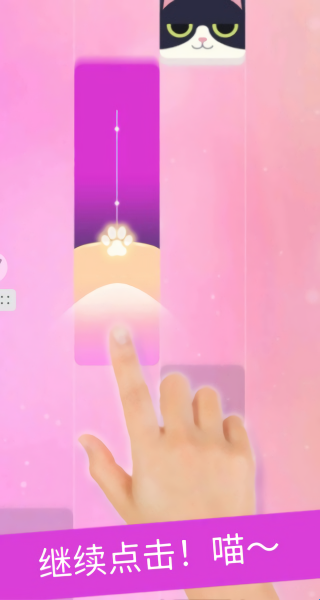 2、按照提示,当看到带有猫爪标识的紫色区域时,用手指点击该区域。持续点击,跟随指引保持节奏,通过连续点击来推进游戏。