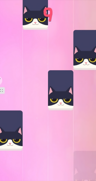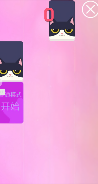 4、观察粉色背景上的猫咪方块,它们会从上方下落。需集中注意力,当猫咪方块到达合适位置时,快速点击,以此获得分数。