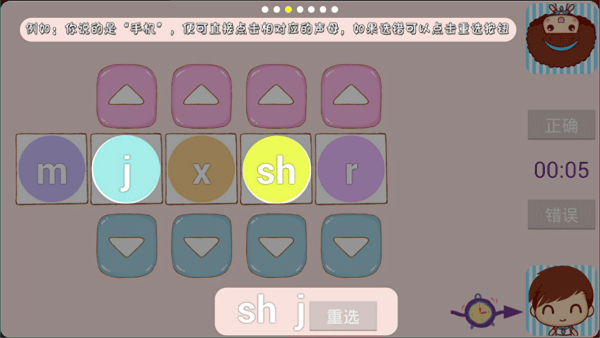 2、游戏会随机给出4个活动声母和一个固定声母,两人要用这些声母组词或组句;