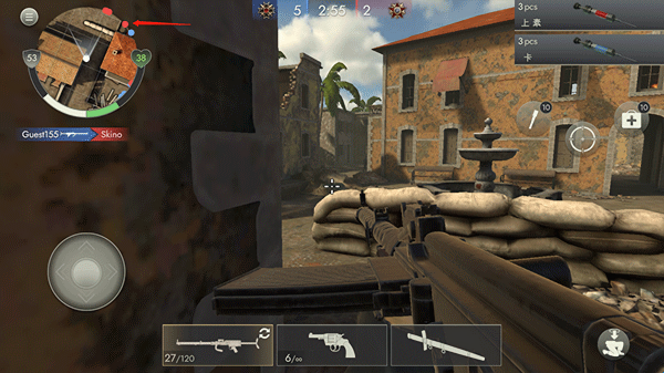 3、二战前线1942游戏开始后,左下角遥感操控角色的移动,右边控制方向、射击、治疗、等操作
