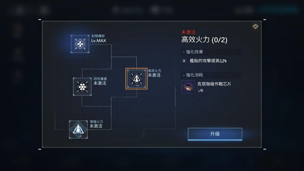 4、点选"强化"进去后,你通常都会发现,全部都不能点选,因为缺少这个舰艇的"作战芯片"。