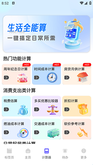 4、进入计算器页面,为大家提供了不同场景下的计算功能。