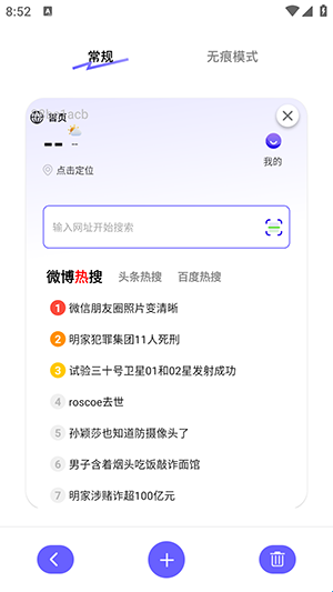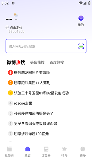 NC浏览器是一个非常便捷的手机浏览器软件,该软件的界面采用简洁风格,直接在搜索框来里面输入关键字,全网的内容都能轻松找到哦,同时配备微博热搜和百度热搜排行榜,让你轻松吃瓜。并且软件支持无痕浏览,还配备了计算器、待办等实用功能。