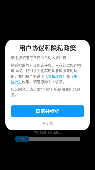 1、阅读用户协议和隐私政策之后点击同意并继续;