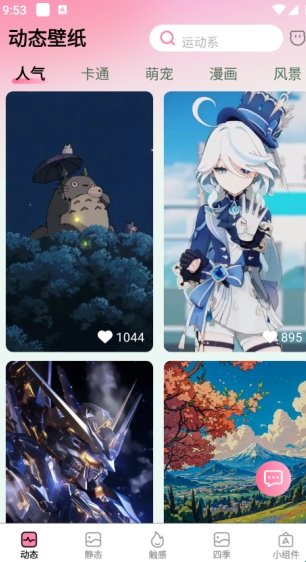 椰椰壁纸全屏免费版(原名椰椰免费壁纸),该软件为大家带来了大量精美的壁纸内容,都是高清无水印的,你喜欢的类型都能轻松找到哦,可输入关键字进行搜索,静态、动态甚至是触感壁纸都应有尽有,让你轻松享受视觉与触感的双重体验,让手机桌面变得更具特色。