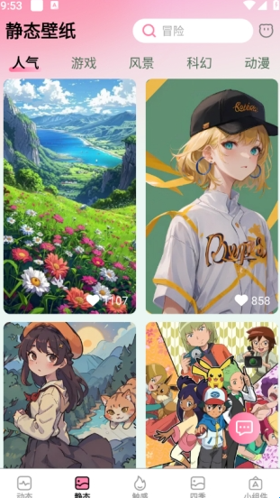 这是一款非常好用的壁纸软件,里面的壁纸资源非常丰富种类非常齐全还有每天更新以及伤心的小组件,用户可以收藏自己喜欢的资源,下载的组件以及壁纸都是完美贴合不同手机屏幕尺寸,非常自然。软件的壁纸都是免费的,推荐一些你可能感兴趣的风格壁纸,通过分类搜索关键词可以快速找到。