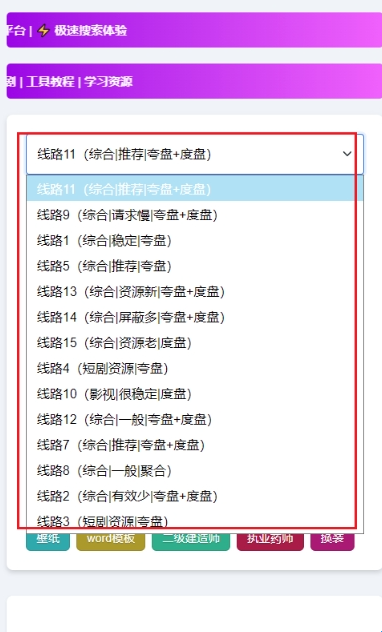 3、选择一种线路,然后在输入框中输入资源关键字,