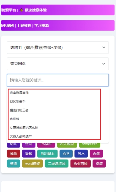 3、提供许多常用和流行的资源搜索术语,您可以直接选择使用它们。