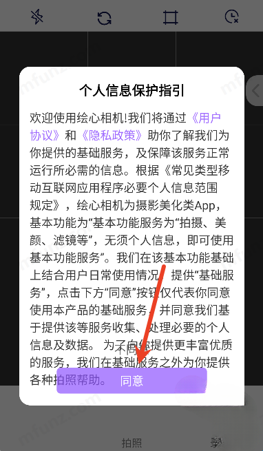 2、进入拍照页面,开启相机权限后点击拍照按钮