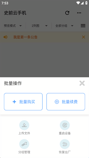 2、进入app可以查看全部分组,根据需要打造云端手机;