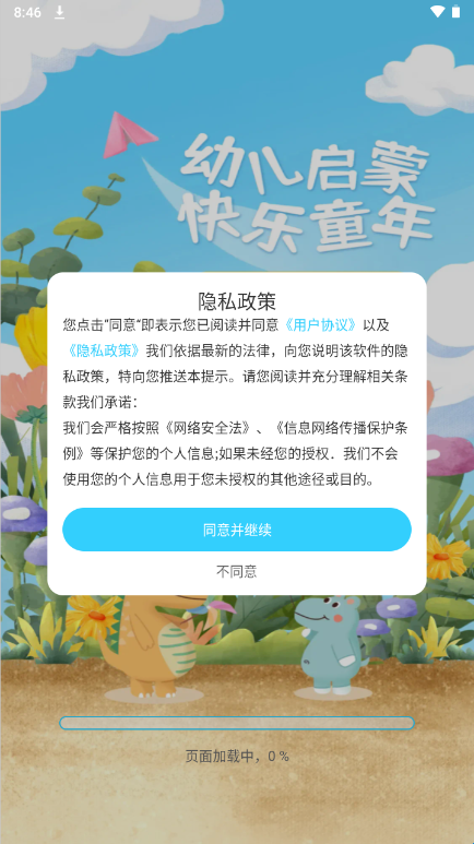 1、首先打开软件阅读“隐私政策”后,点击“同意并继续”按钮进入APP;