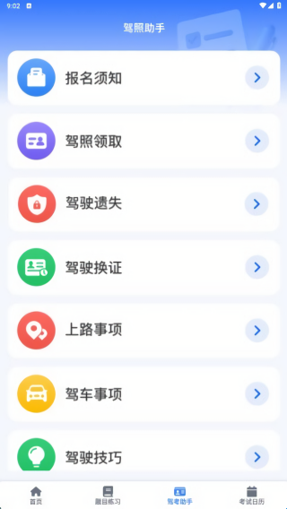 3、进入驾考助手页面,大家能熟知驾考报名、驾照领取等许多相关信息。