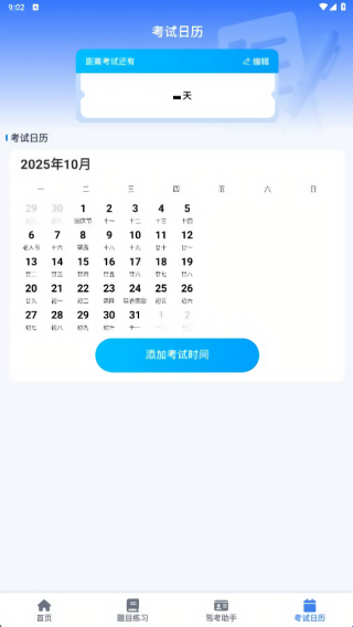 4、考试日历页面则提供了提醒服务,根据你的考试时间进行添加,让大家在刷题与考试时都有精准提醒。