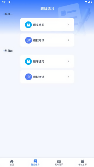 2、在题目练习页面,大家可以看到科一、科四的考题内容,轻松查看。