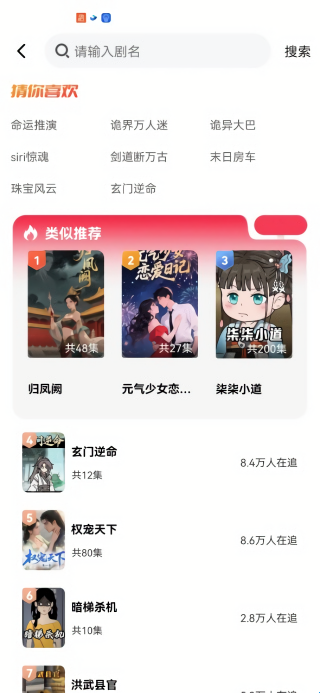 3、点击首页上面的搜索页面进行输入剧名,快速的搜索你喜欢的漫剧;