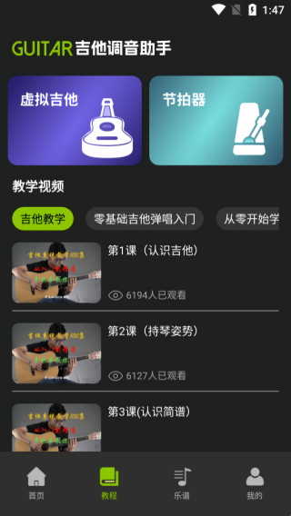 4、乐谱类型很丰富,支持大量的吉他教程,素材很丰富。