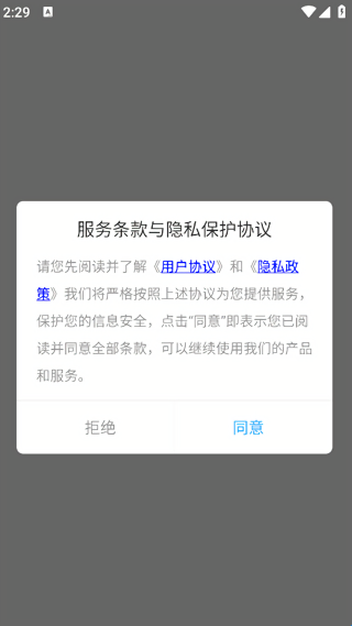 1、下载并安装APP,点击‘同意’,即可进入主页面;