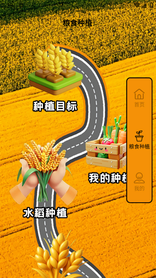3、点击页面右侧的‘粮食种植’,即可看到种植目标、我的种植、水稻种植等功能;