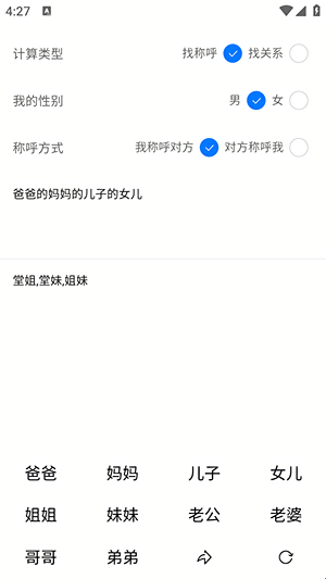 用途:快速推算亲属间的辈分关系(如祖孙、叔侄等),帮助用户理清家族脉络或社交场合中的称谓问题。