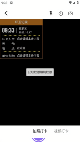 强大的相机拍照打卡功能,在应用中可一键拍摄记录现场,并能自定义添加水印;