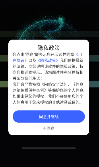 1、首先打开软件阅读“隐私政策”后,点击“同意并继续”按钮进入APP