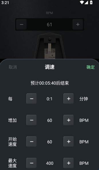 4、最后点击节拍器中间的开启按钮,就可以播放节拍器的声音了