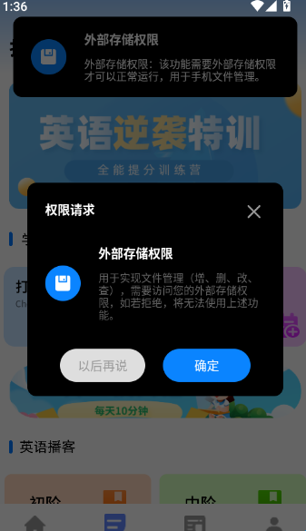 4、之后会出现“权限请求”弹窗提示,点击“确定”按钮进入下一步