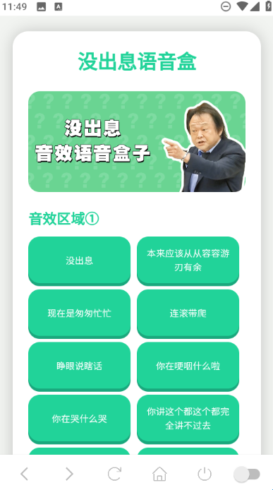 没出息语音盒为大家带来了各种有趣的语音内容,都融合了一些网络热梗,内容十分搞笑有趣,大家选择感兴趣的语音可直接播放哦,适用于不同的场景,带来超棒的使用体验。当然,该软件是完全免费的,且不需要登录就能直接使用,无任何限制。
