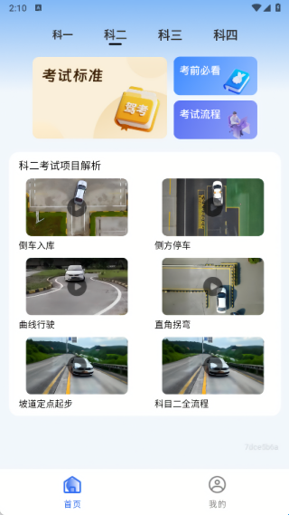 2、在科二页面中有考试标准、考前必看、考试流程,还有科二考试项目解析的内容;