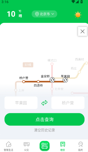 3、在软件首页界面找到底部菜单栏“地铁”功能按键点击进入下一步操作