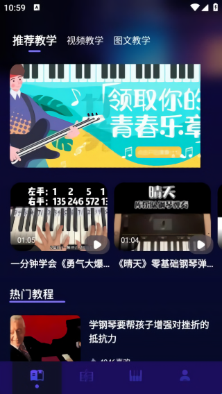 想学钢琴的小伙伴可以试试我的钢琴助手app!该软件是全新上线的哦,里面提供的教学内容非常全面,配备视频和图文教学,大家可自由选择学习,零基础的小伙伴也能轻松体验哦,还模拟了真实的钢琴键盘,以后随时随地都能轻松练习了。