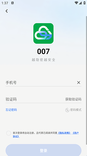 2、输入手机号和验证码可以快速登录,首次登录将自动注册。