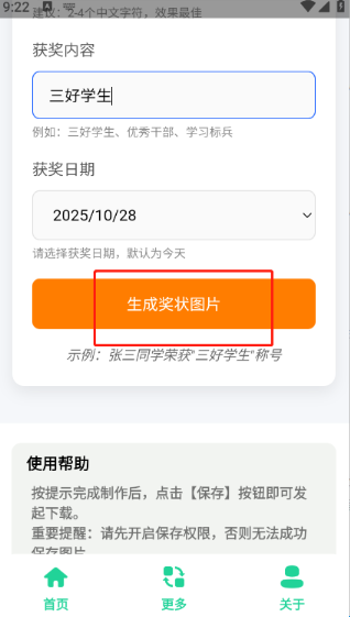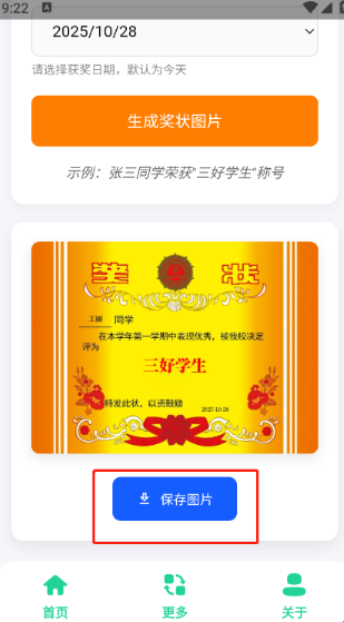 4、就可以看到生成的奖状截图了,点击“保存图片'.
