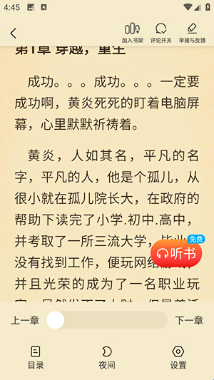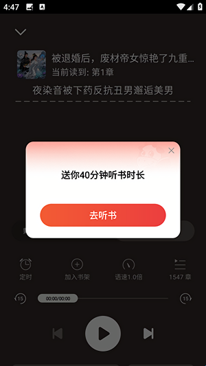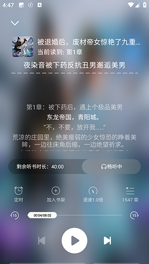 语音朗读功能提供多种声音任你选择,满足你的听书需求,解放双眼,随时随地听小说,海量小说免费听!