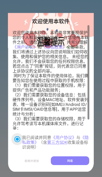 1、首先打开软件阅读说明后,点击“同意”按钮进入APP