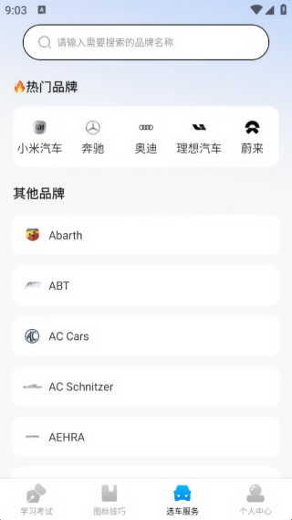 4、选车服务有热门品牌提供,各种汽车品牌都是可以看到。