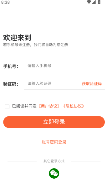 2、在登录界面输入手机号与验证码后面点击“立即登录”按钮进入程序