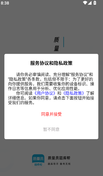 1、首先打开软件阅读协议和隐私政策后,点击“同意并接受”按钮进入APP