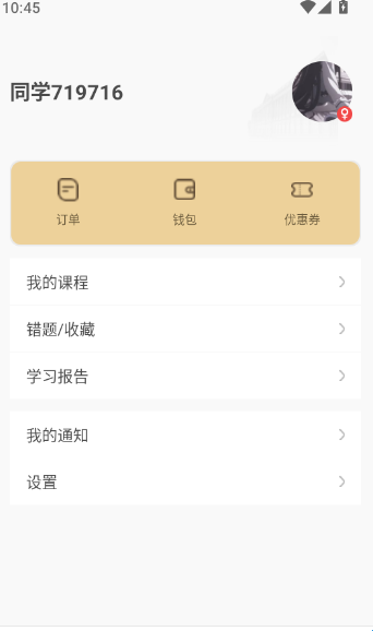 5、然后在个人中心功能菜单界面找到“错题/收藏”功能按钮点击进入下一步