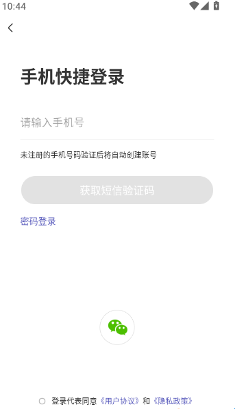 2、在手机快捷登录界面输入手机号与验证码后登录进入程序